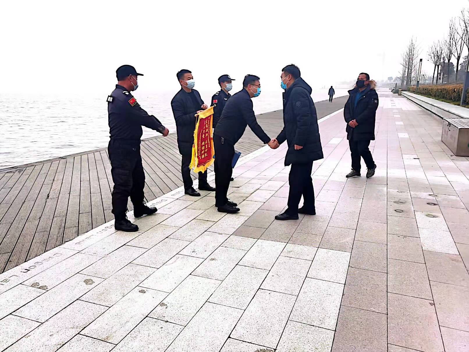 在对方驾驶豫蓝色小货车撞击贵公司车辆后逃跑时,保安队员追出约2公里后将车辆拦截,将其带入郑州动车段公寓区域后等待民警,在此过程中对方企图逃跑并双方发生争执,导致队员鼻骨损伤,牙齿松动,当场出血。在此情形下贵方队员依旧没有松手,将对方牢牢控制住直到警方到来。该队员表现出来的忠于职守、尽职尽责、不畏艰险精神,给服务单位留下深刻的印象。针对此次事件该服务单位特赠锦旗一面,奖励2000元,以资鼓励,我司也将继续发扬优良作风,园满完成安保任务。